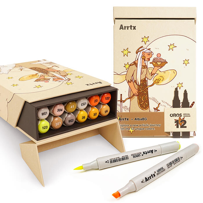 Abpusējas marķēšanas pildspalvas ARRTX Oros, 12 krāsas, zemes toņu tonis