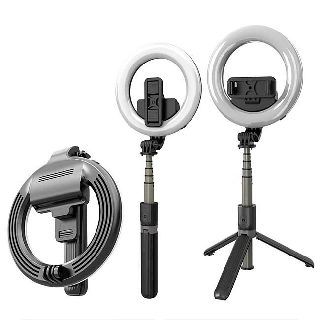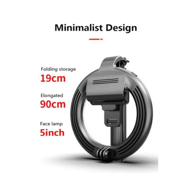 Lampas gredzena diametrs ir 5 collas, kas ir pietiekami, lai iezīmētās vietas aizpildītu ar gaismu un sagatavotu objektu fotografēšanai. Pašbildes statīvs ir unikāls izgudrojums, ģeniāls savā vienkāršībā. Jūs varat uzstādīt lampu uz statīva vēlamajā leņķī vai arī izmantot to kā pašbildes nūju ar gatavu regulējamu gaismu!