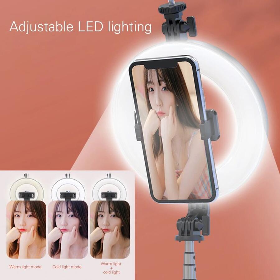 RoGer V2 Universāls Selfie Stick ar 3 toņu LED lampu / Tripod Statnis / Bluetooth Tālvadības pults