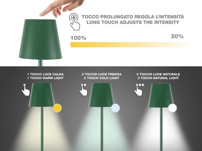 Ar vienkāršu pieskārienu jūs varat izvēlēties starp siltu, aukstu vai dabisko gaismu.