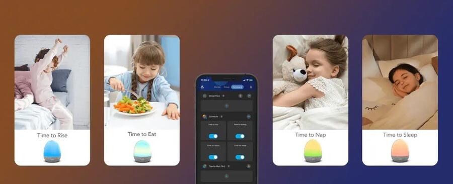 Ērta lietošana miega laikā – iestatiet taimerus, spilgtumu un krāsu temperatūru, izmantojot lietotni
