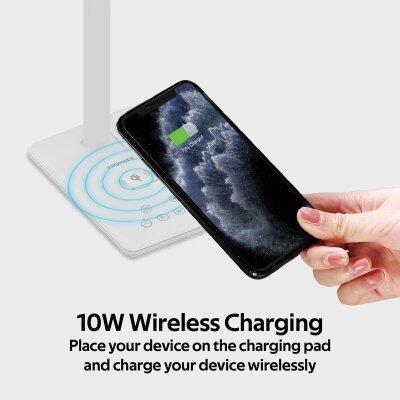 Promate AuraLight-1 ir stilīga LED galda lampa ar bezvadu uzlādi, kas ir lieliski piemērota lietošanai mājās un birojā.