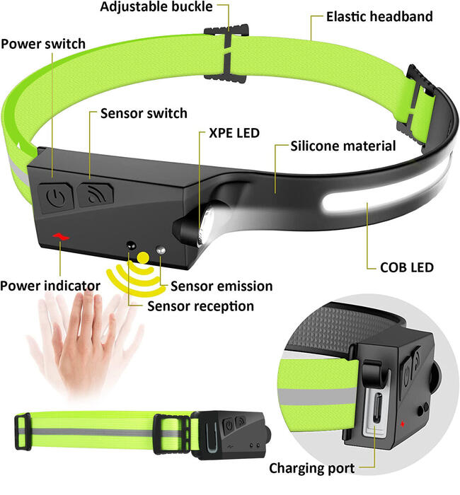 Tas nodrošinās mums produkta lietošanas komfortu, vienkārši pārvietojiet roku pie diodes, kad vēlaties ieslēgt vai izslēgt galveno lukturi, nenospiežot slēdzi, vienkārši pamājiet ar roku blakus sensoram, lai ieslēgtu apgaismojumu. vai izslēgts.