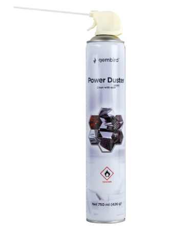 Gembird CK-CAD-FL750-01 ir aerosols ar saspiestu gaisu, kas paredzēts efektīvai putekļu un netīrumu noņemšanai no grūti pieejamām vietām. Ideāli piemērots lietošanai biroja tehnikā, datoros, tastatūrās, kamerās un citos ierīcēs. Komplektā iekļauta pagarināta caurule precīzai gaisa plūsmas virziena noregulēšanai.