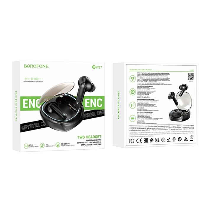 Borofone BW37 TWS 5.3 BT Bezvadu austiņas ar LED indikācijas efektiem / 7h akum. darbības laiks Black