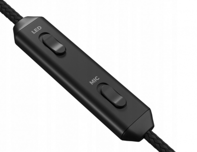 • Īpašības: Skaļuma kontrole uz kreisās austiņas, mikrofona un apgaismojuma slēdži