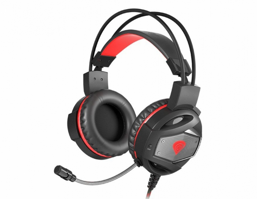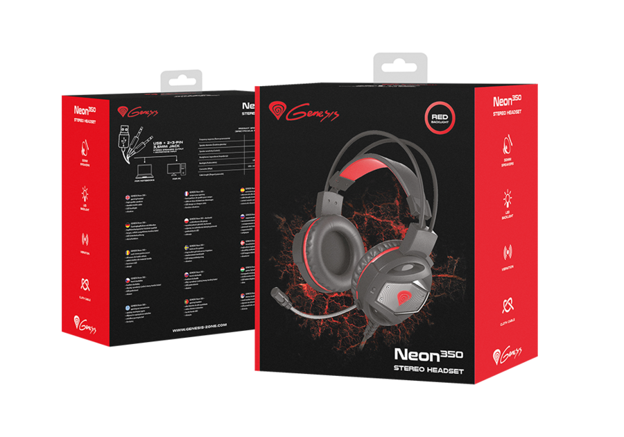 Natec Genesis Neon 350 Spēļu Austiņas Datoram Ar Mikrofonu un pogu On / Off / LED / USB Melnas-Sarkanas