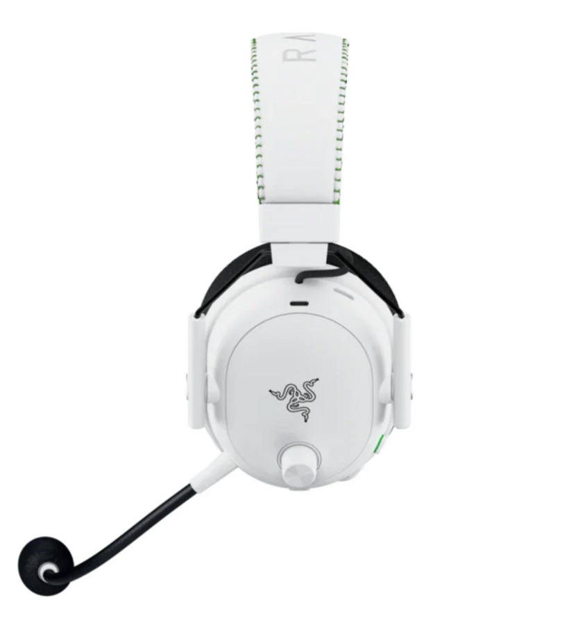 Razer BlackShark V3 Pro austiņas piedāvā gan vadu, gan bezvadu savienojumu ar Bluetooth. Svars 367g, tās ir paredzētas spēlēm un ir stilīgā baltā krāsā.