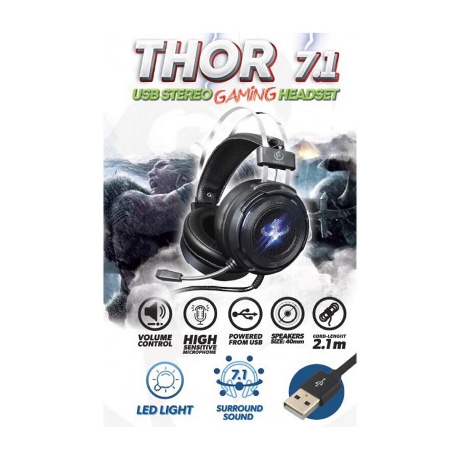 Austiņas ar telpiskās skaņas atskaņotājiem: - tērauda galvas saite-zils fona apgaismojums-USB savienotājs-iebūvēta augstas kvalitātes iekšējā skaņas karte-joslas platums: 20Hz-20kHz-Pretestība: 32 ? (pie 1kHz) - jutība: 108 dB / mW-jauda: 45 mW-skaļuma poga-Kabeļa garums: 2.1 m-premium Pīts kabelis