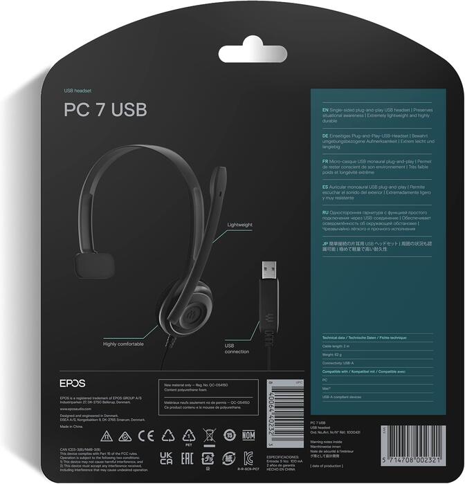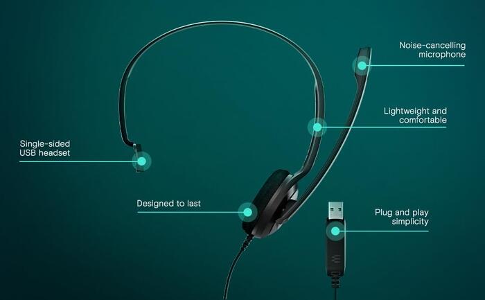 Sennheiser PC 7 USB Headset For Internet Communication And E-learning Black