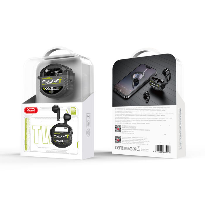 XO G12 ir Bluetooth 5.3 TWS austiņas ausīs ar uzlādes korpusu. Austiņas atbalsta TWS (True Wireless Stereo) tehnoloģiju - abas austiņas savienojas savā starpā, veidojot bezvadu stereo komplektu. Pārnēsājamais futrālis ar iebūvētu akumulatoru ļauj ne tikai uzlādēt, bet arī droši glabāt austiņas kabatā, somā vai mugursomā. Atbrīvojiet rokas un klausieties mūziku, interneta radio, strādājot, ejot, trenējoties vai braucot ar automašīnu. XO G12 TWS austiņas ir ideāls risinājums viedtālruņu, datoru, piezīmjdatoru, planšetdatoru un citu ierīču, kas atbalsta Bluetooth tehnoloģiju, lietotājiem. Tās ir saderīgas ar lielāko daļu ierīču ar operētājsistēmām Android un iOS. Austiņās ir arī mikrofons, tāpēc varat ērti veikt balss zvanus. Pateicoties enerģiju taupošajai Bluetooth 5.3 tehnoloģijai, sarunu/mūzikas klausīšanās laiks ar pilnu uzlādi ir aptuveni 240 minūtes (atkarībā no skaļuma līmeņa).