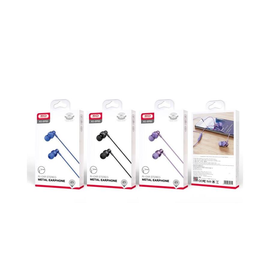 XO EP55 ir In-ear vadu austiņas ierīcēm, kas aprīkotas ar 3,5 mm ligzdas ligzdu. Tie ir universāli un piemēroti daudzām ierīcēm, piemēram: viedtālruņiem, mp3 / mp4 atskaņotājiem, TV un citiem. Vads, kas izgatavots no elastīga silikona, nodrošinās pēc iespējas ilgāku lietošanas laiku.