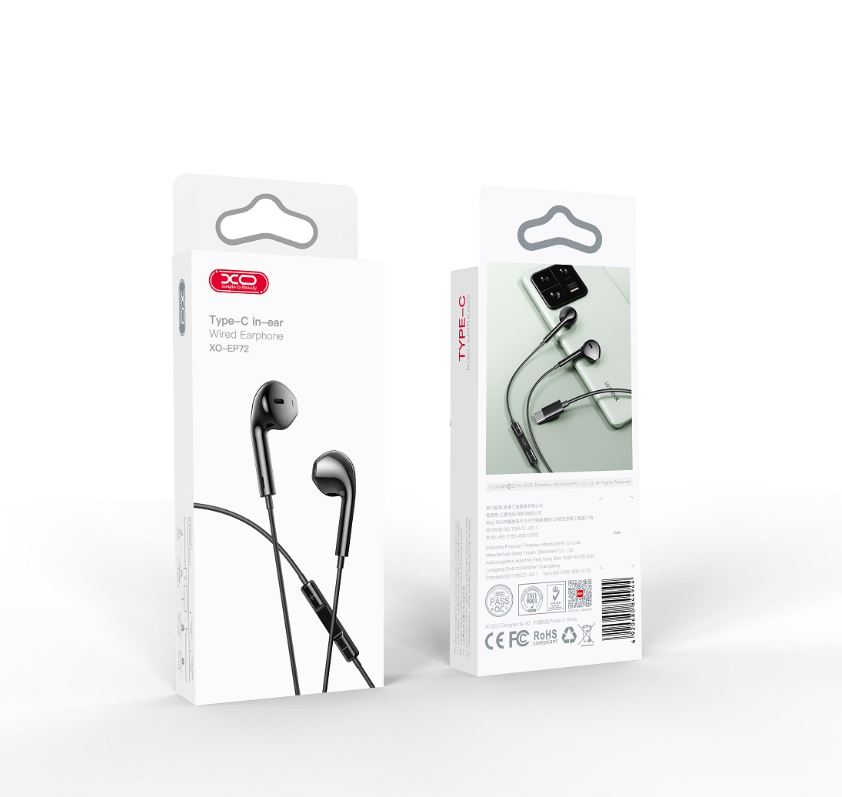 XO EP72 ir ausīs ievietojamas vadu austiņas viedtālruņiem, kas ir aprīkoti ar USB-C ligzdu un nav aprīkoti ar 3,5 mm ligzdu. Kabelis no elastīga silikona nodrošinās pēc iespējas ilgāku lietošanas laiku.