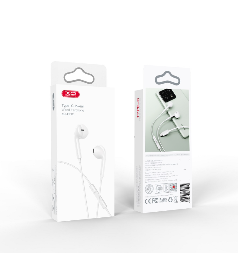XO EP72 ir ausīs ievietojamas vadu austiņas viedtālruņiem, kas ir aprīkoti ar USB-C ligzdu un nav aprīkoti ar 3,5 mm ligzdu. Kabelis no elastīga silikona nodrošinās pēc iespējas ilgāku lietošanas laiku.