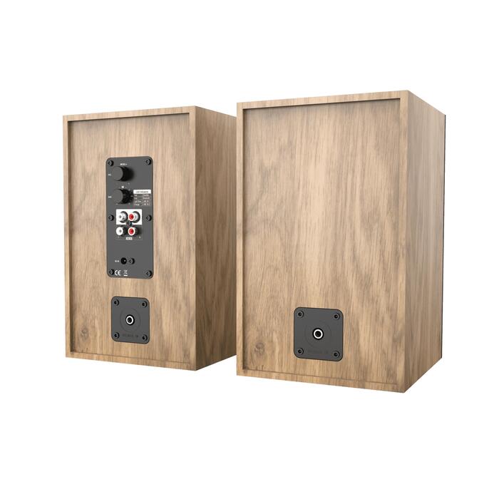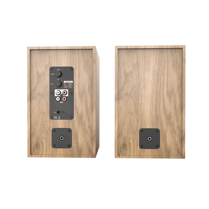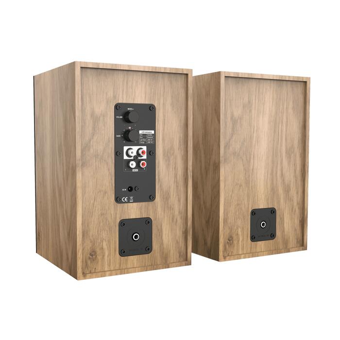 Skaļruņiem ir basa refleksu korpuss un tālvadības pults ērtai lietošanai.