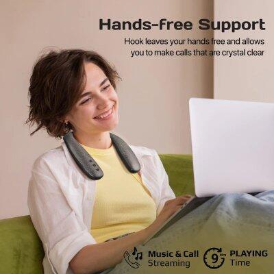 PROMATE Hook kaklā piestiprinātie skaļruņu sistēma nodrošina telpisko skaņu, savukārt augstas kvalitātes mikrofoni nodrošina brīvroku zvanus.