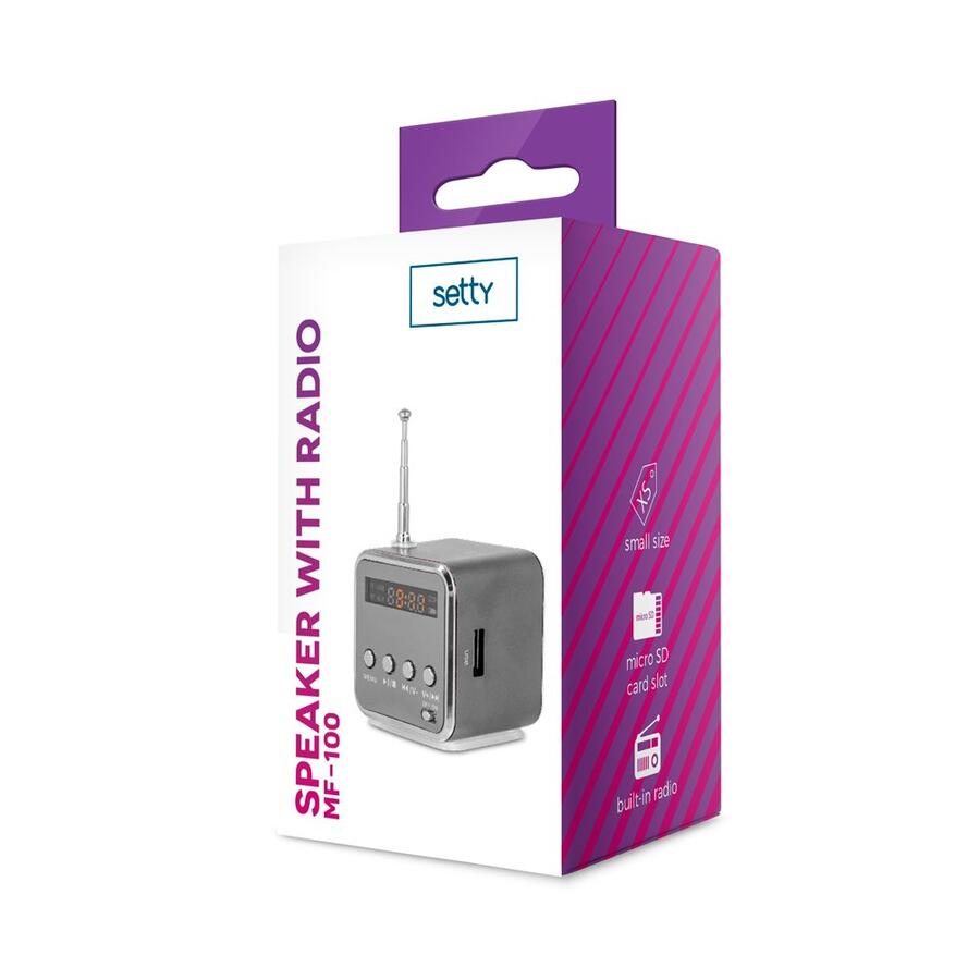 Bezvadu Skaļrunis MF-100 ar radio ir būtisks piederums katram mūzikas ventilatoram. Tas ir aprīkots ar LCD displeju, microSD kartes slotu un USB ieeju, kas ir ideāli piemērota mūzikas klausīšanai tieši no pendrive. Iebūvēts uzlādējams akumulators nodrošina ilgu bezvadu lietošanu. Alumīnija korpuss ir izturīgs un triecienizturīgs.