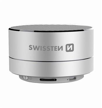 Kompakts, metālisks Bluetooth mini skaļrunis Swissten i-METAL. Reproduktoram ir slots micro SD kartei. Akumulators 300 mAh. Iepakots Swissten mazumtirdzniecības iepakojumā.