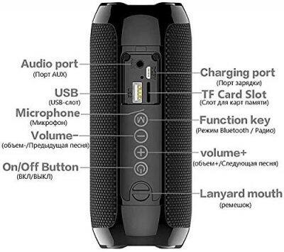 Pārnēsājamajam skaļrunim TG-117 ir divi 2x12 W skaļruņi un jaudīga 1200 mAh baterija. Ierīces korpuss ir izgatavots no augstas stiprības auduma un gumijotas plastmasas. Ūdensnecaurlaidīga pakāpe IPX6.