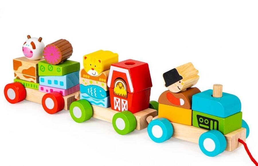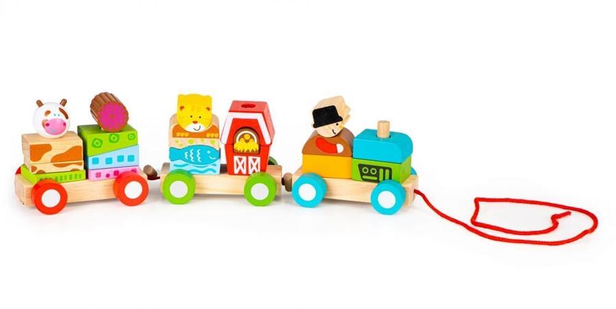 EcoToys Koka Rotaļu vilciens ar klucīšiem