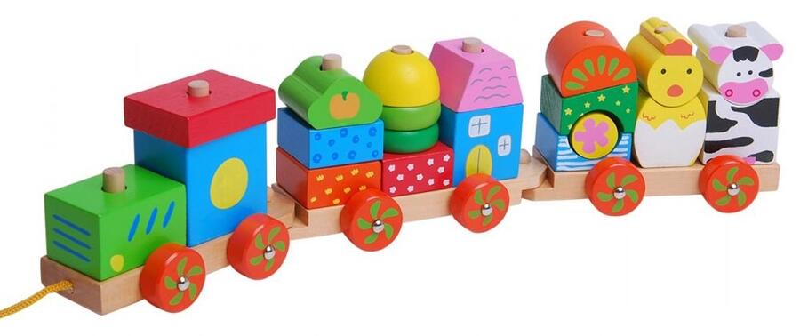 EcoToys Koka Rotaļu vilciens ar klucīšiem