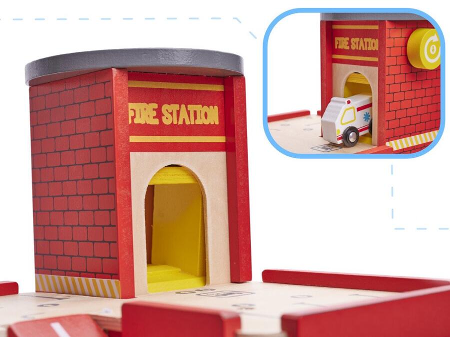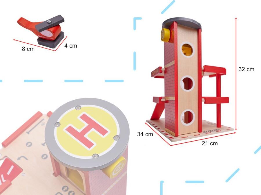 Šī unikālā garāža sastāv no četriem līmeņiem! Pirmie trīs paredzēti ugunsdzēsēju mašīnu novietošanai. Būs vieta komplektā iekļautajiem transportlīdzekļiem, kā arī vieta, kur novietot citas bērna iecienītākās automašīnas.