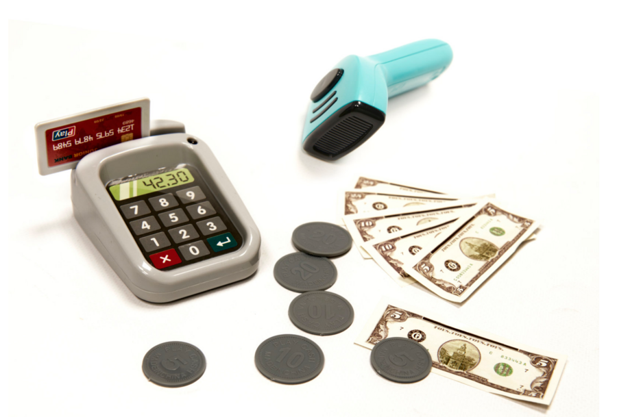 Nenoliedzama komplekta atrakcija ir maksājumu terminālis un svītrkodu skeneris, kas izdod skaņas, kas līdzinās īstām ierīcēm.
