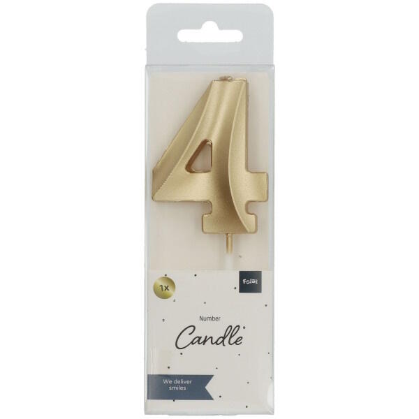 Folat Glamor Tortes svece Skaitlis 4 (7cm) Metallic Gold