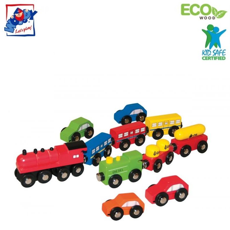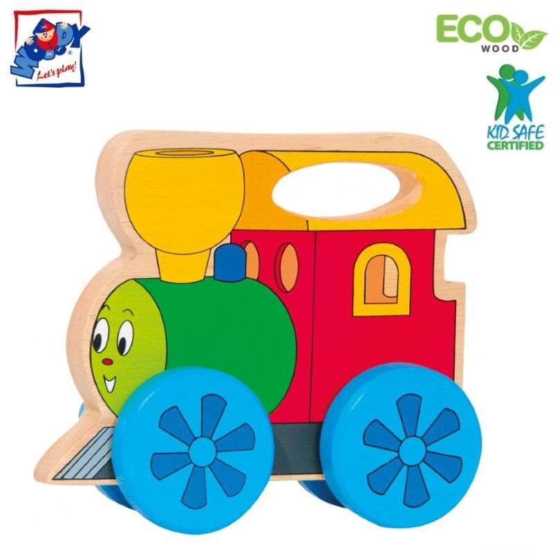 Woody 93036 Eko koka izglītojošā rotaļlieta stumt ar roku "Vilciens" bērniem no 2 gadiem + (17x14cm) (WD93036)