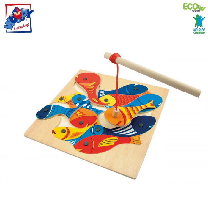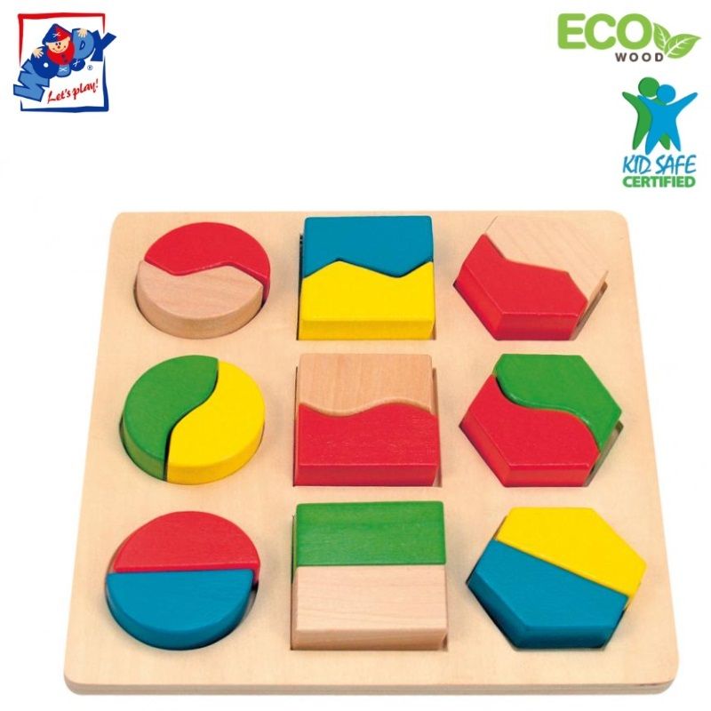Woody 90674 Attīstoša krāsaina Eko Koka Piramīda-konstruktors ar magnētiskiem elementiem (13gab.) bērniem no 2 gadi + (13x17cm)