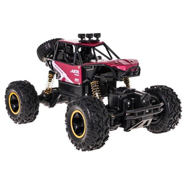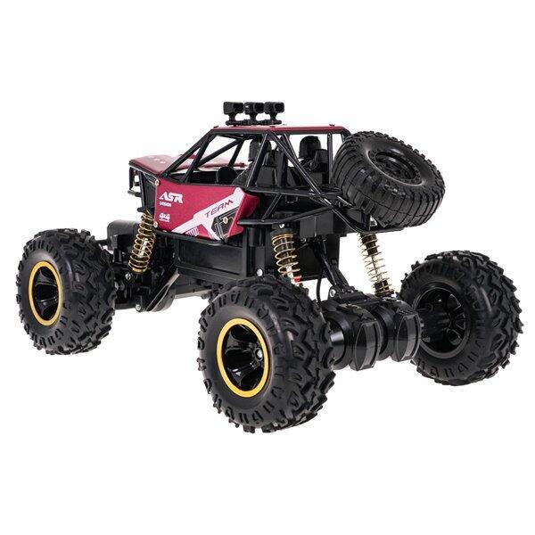 MONSTER ROCK 1:16 ir pilnpiedziņas radio vadāms kāpurķēžu automobilis sarkanā krāsā, piemērots bērniem no 8 gadiem. Lielās gumijas riepas ar protektoru un augstas kvalitātes atsperu piekare nodrošina stabilu un ērtu vadību uz jebkuras virsmas. Metāla korpuss garantē ilgmūžību, bet pilnpiedziņa ļauj viegli pārvarēt šķēršļus.