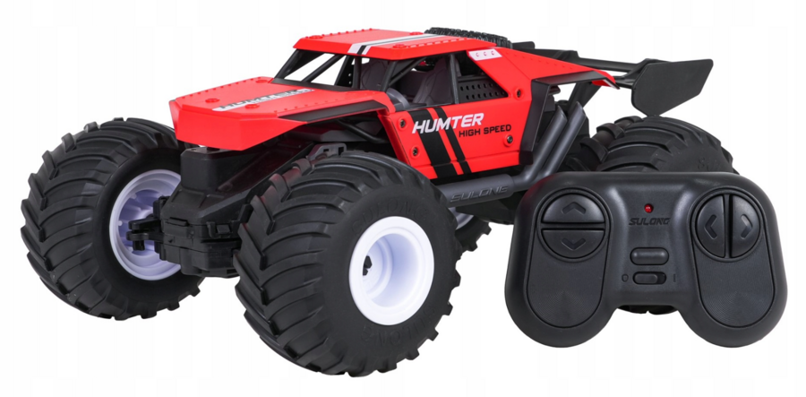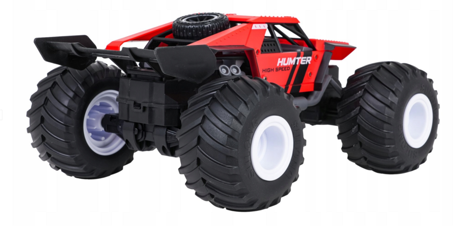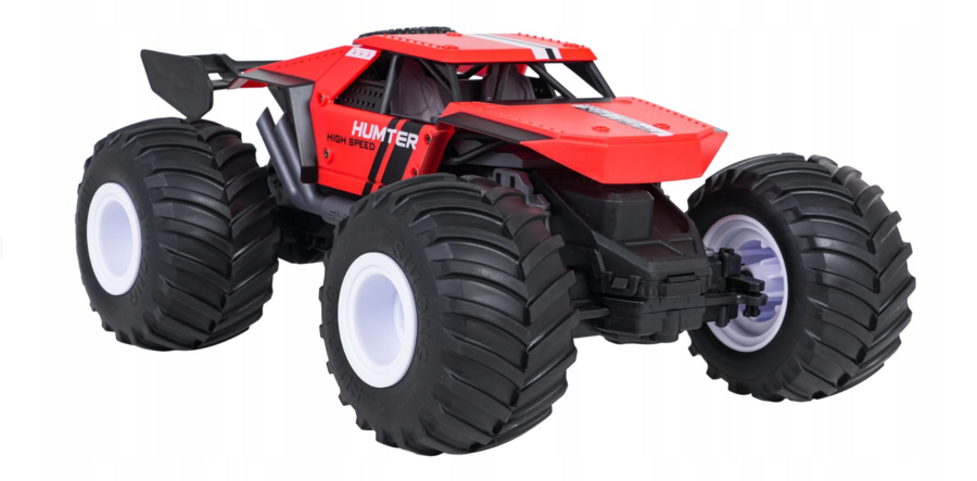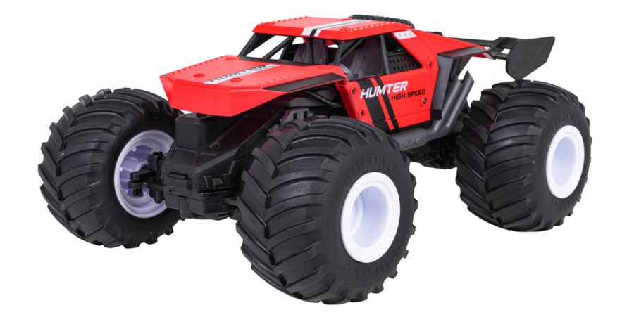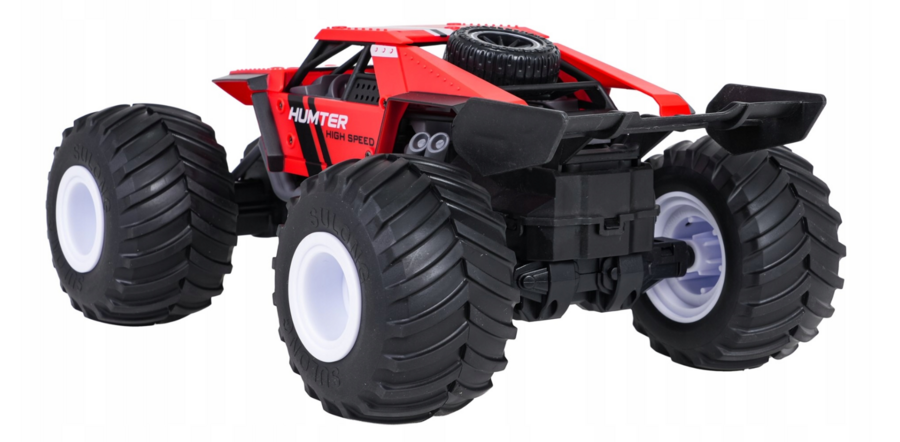 Hunter R/C Crawler 1:16 ir RC bezceļa automašīna, kas veidota braukšanai pa nelīdzenu segumu. Lielie riteņi, amortizatori un augstā klīrenss nodrošina stabilitāti un spēju pārvarēt šķēršļus. Sarkanais korpuss piešķir modelim dinamisku izskatu. Vadība notiek ar 2.4 GHz pulti, kas ļauj spēlēt bez traucējumiem un izmantot vairākas mašīnas vienlaikus.