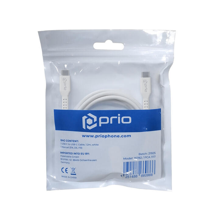 prio ātrgaitas uzlādes un sinhronizācijas USB C līdz USB C kabelis 5A 1,2 m balts