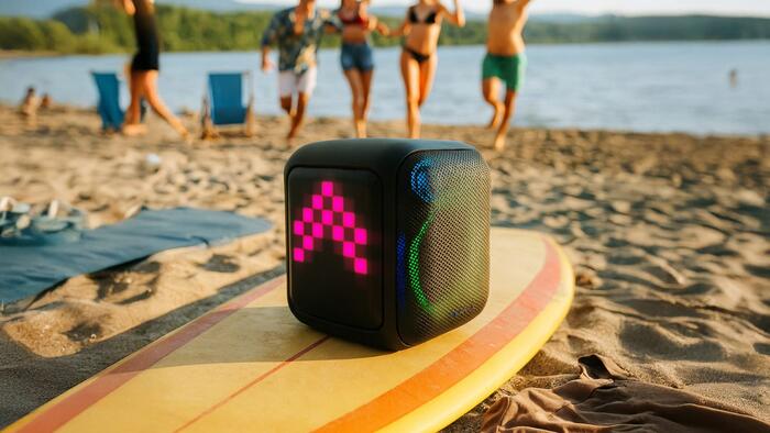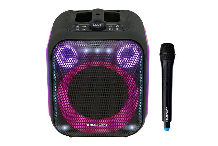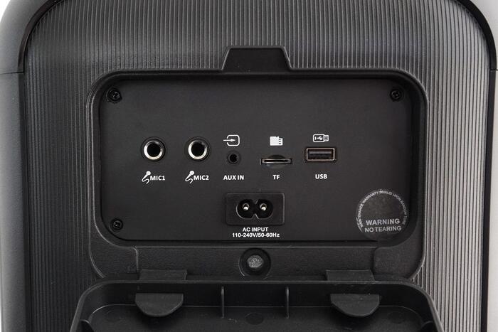 Kompakts Party Box ballīšu skaļrunis ar iebūvētu Bluetooth moduli bezvadu mūzikas atskaņošanai no mobilajām ierīcēm un TWS funkcijas atbalstu – divu skaļruņu savienošanai pārī.