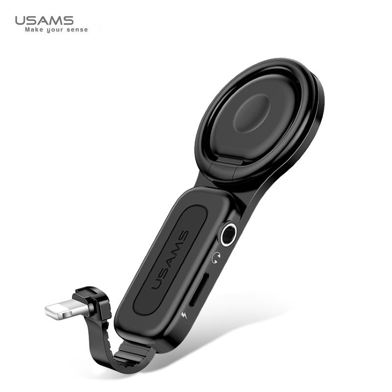 Unikāls un praktisks risinājums kā pie Lightning ligzdu mobilajām iekārtām pieslēgt 3.5mm standarta audio austiņas un Lightning savienojuma uzlādes iekārtu vienlaicīgi, kas vienlaicīgi nodrošina iespēju klausīties mūziku un veikt iekārtas uzlādi. Papildus lieliska iespēja ērti turēt telefonu, pateicoties adapterī iebūvētajam pirksta gredzena fiksatoram vai galda statīvam un iespēja piefiksēt adapteri pie jebkura magnētiska auto stiprinājuma, pateicoties iebūvētam magnētiskajam elementam.