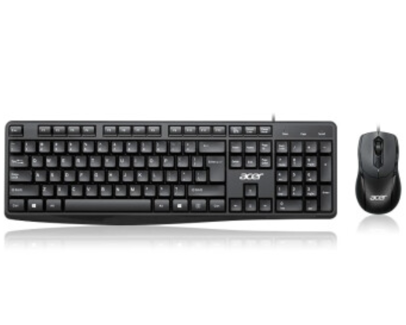 Acer OAK030 ir vadu komplekts, kas ietver tastatūru un peli, paredzēts lietošanai ar klēpjdatoriem un galddatoriem. Tastatūrai ir 104 taustiņi un ciparu bloks, kas nodrošina ērtu datu ievadi. Peles simetriskais dizains ir piemērots lietošanai gan ar labo, gan kreiso roku. Abas ierīces savienojas caur USB interfeisu, nodrošinot uzticamu un stabilu savienojumu.