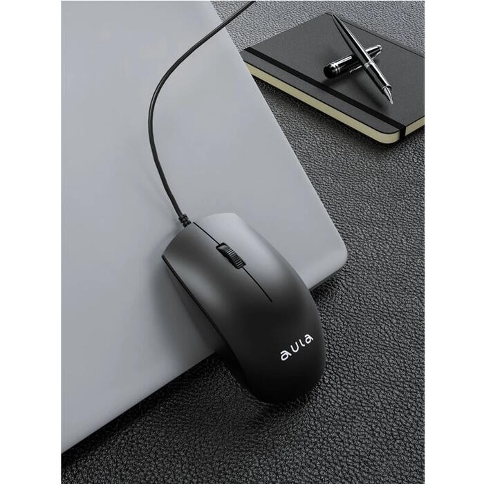 Aula AM100 Ergonomiskas komforta formas Pele ar 3 pogām/ 1200dpi/ USB Kabelis Melna