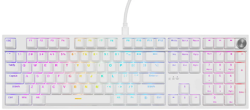 • Pilna izmēra US QWERTY izkārtojums (107 taustiņi) un RGB apgaismojums