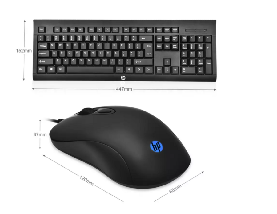 HP KM100 USB vadu tastatūras un 1600 dpi peles komplekts datoriem, klēpjdatoriem un Mac