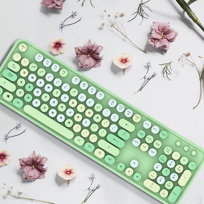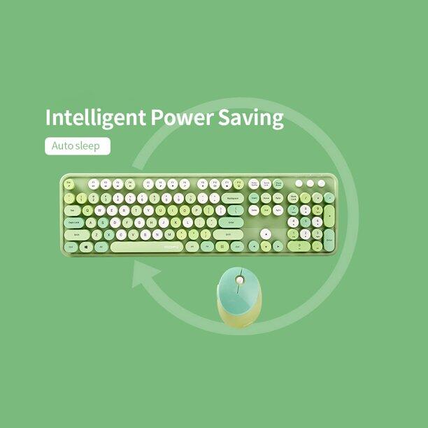 MOFII Sweet Bezvadu Klaviatūra un Optisko Peli 2,4G USB Zaļa - Multi krāsu Pogas