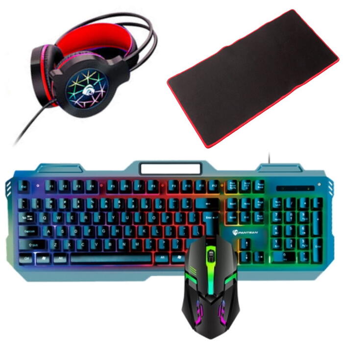 Pantsan 4in1 Spēļu komplekts - RBG LED Klaviatūra + Pele + Austiņas 2* 3.5mm + Paliknis 80x30cm