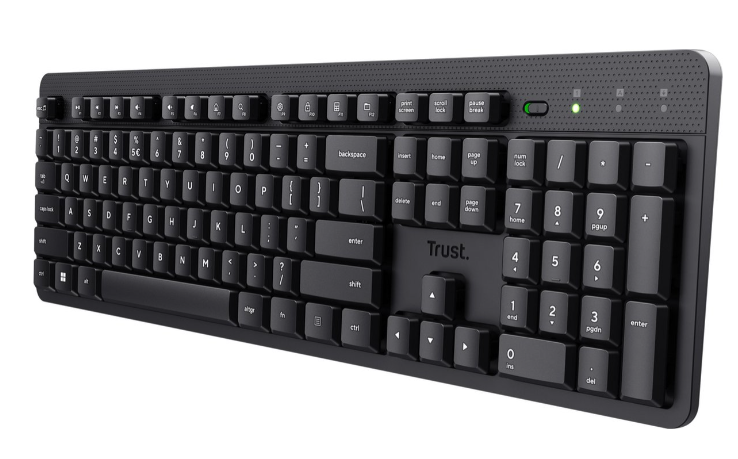 Plāna un klusa bezvadu tastatūra, lai stundām ilgi ērti strādātu Qwerty US Layout.