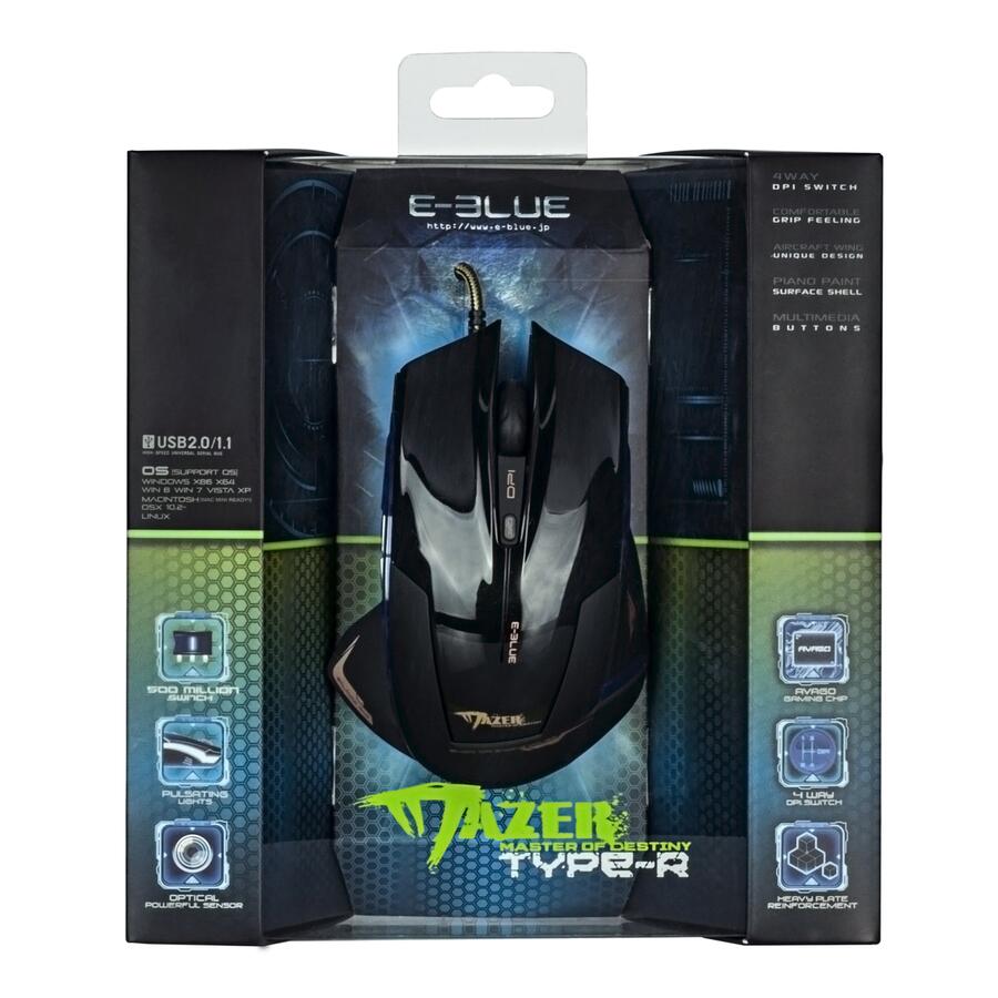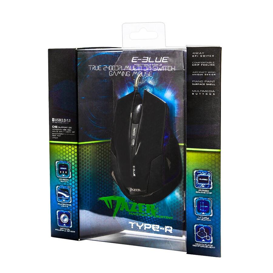 E-Blue spēļu datorpele ar papildus pogām un izturīga kabeļa, kas ražots no izturīga materīala. Papildus pogas DPI regulācijai un citām funkcijām. Maksimālais DPI 2400.