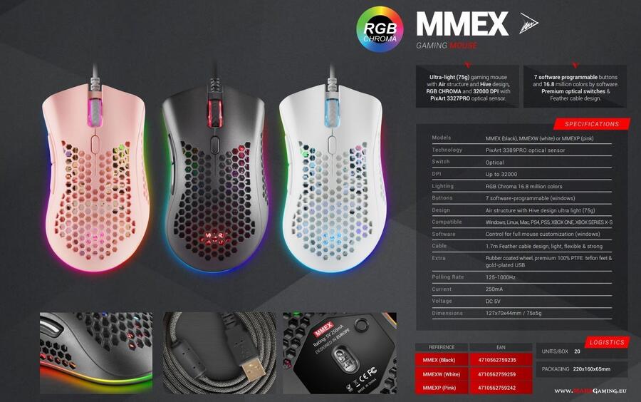 Mars Gaming MMEX Spēļu pele 32000DPI / 1000Hz / 400IPS