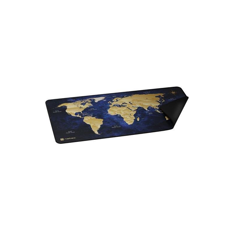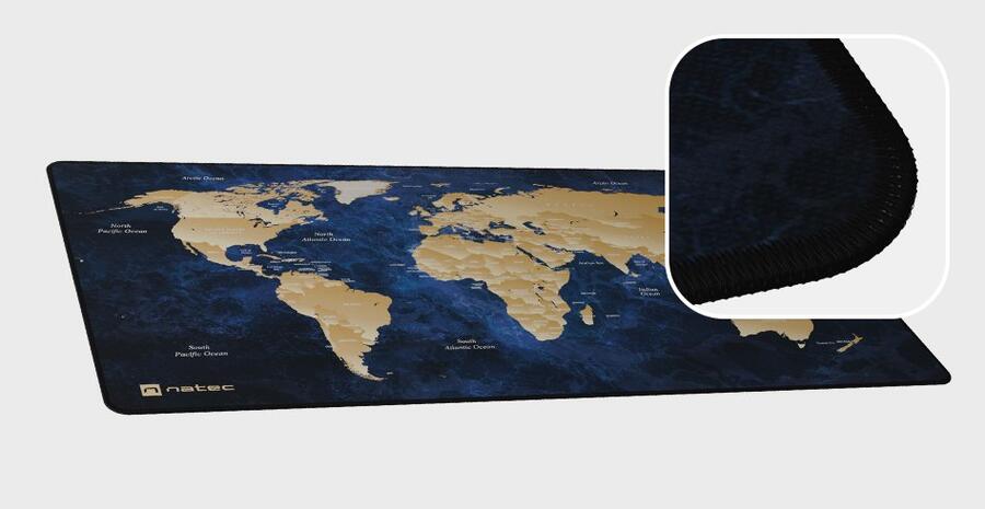 Natec World Deep Blue peles paliktnis ir XXL izmēra modelis, kas paredzēts, lai nodrošinātu plašu darbstaciju zonu gan klaviatūrai, gan pelēm. Ar izmēriem 800 × 400 mm un aptuveni 2,5 mm biezumu tas nodrošina kustību brīvību un ērtu lietošanu. Augstas kvalitātes tekstila virsma nodrošina gludu peles slīdēšanu, bet neslīdošs gumijas pamatnis — stabilitāti. Elegants pasaules kartes dizains piešķir raksturu darbavietai. Savietojams ar optiskām un lāzera peli, piemērots gan spēlēm, gan biroja lietošanai.