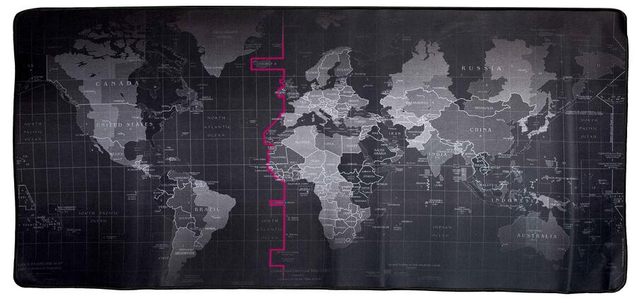 Liels galda paliktnis ar oriģinālu pasaules kartes rakstu.