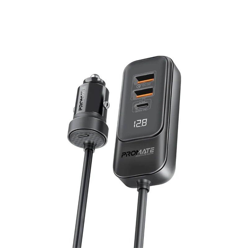 Promate GearHub-120W ir 4 portu automašīnas lādētājs, kas atbalsta Power Delivery un Quick Charge 3.0 tehnoloģijas , ar kopējo jaudu 120 W. Tam ir centrmezgls ar 1,5 metru garu kabeli , kas ļauj aizmugurē sēdošajiem pasažieriem uzlādēt ierīces, savukārt vadītājs un priekšējais pasažieris var izmantot cigarešu šķiltavā iebūvēto USB-C uzlādes portu.