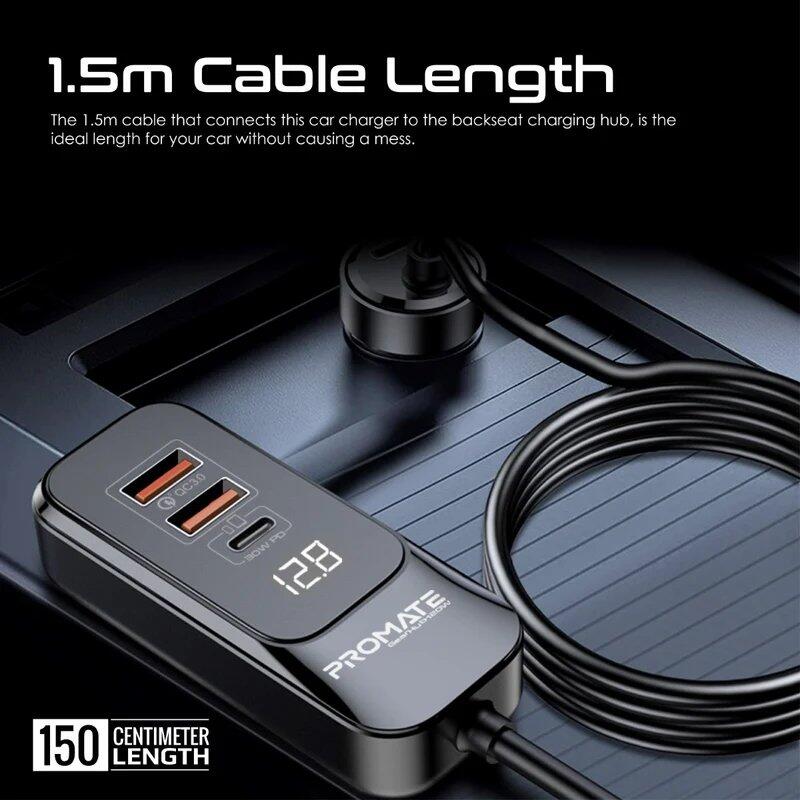 • Funkcionalitāte : Pateicoties 1,5 m kabelim un 3 portu centrmezglam, tas nodrošinās ātru uzlādi visiem automašīnas pasažieriem.