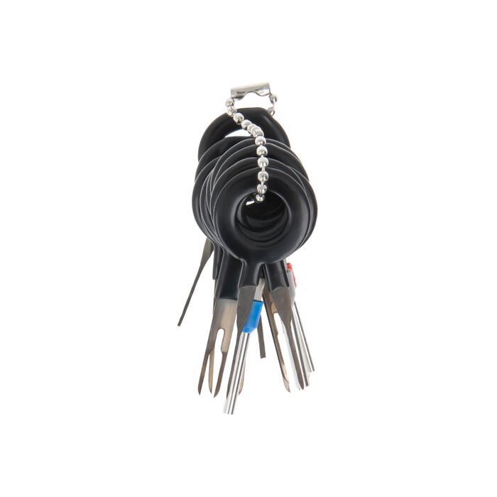 Komplektā ir 11 atslēgas tapu un savienotāju noņemšanai. Noderīgas motociklu, automašīnu un datoru remontam. Darbu atvieglo ar gumiju pārklāti rokturi.