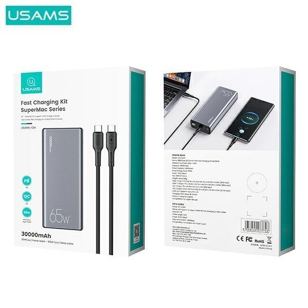 Usams PB59 Fast Charge Powerbank 65W 2xQC3.0+PD Ārējas Uzlādes Baterija 30 000mAh
